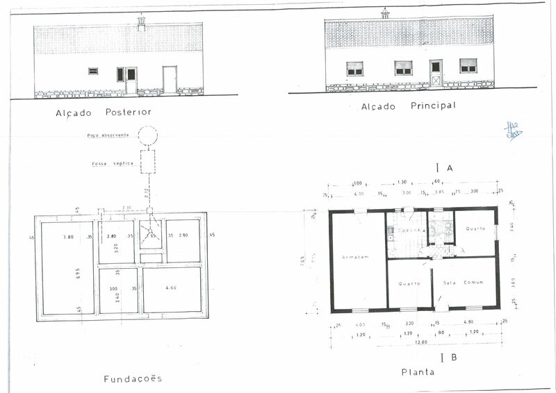 A casa de piso térreo é composta por 3 quartos, 2 casas de banho, sala de estar, cozinha, marquise, arrecadação com forno a lenha e cozinha extra, garagem, e arrecadação.